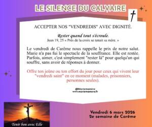 Le vendredi de Carême nous rappelle le prix de notre salut. Marie n’a pas fui le spectacle de la souffrance. Elle est restée. Parfois, aimer, c’est simplement “rester là” pour quelqu’un qui souffre, sans avoir de réponses à donner.