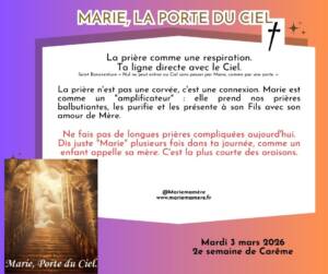 La prière n’est pas une corvée, c’est une connexion. Marie est comme un “amplificateur” : elle prend nos prières balbutiantes, les purifie et les présente à son Fils avec son amour de Mère.